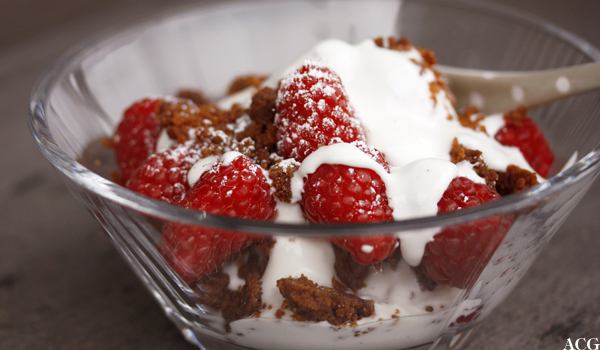 TIPS 2: Bytt ut bringebærene med andre bær, eller erstatt vaniljekesam med vaniljeyoghurt. Variasjonsmulighetene er store.