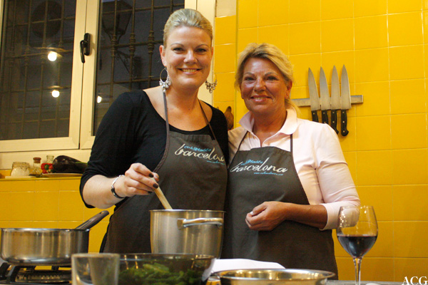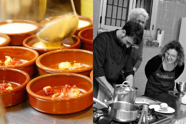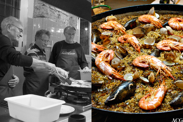 The final dish, paella de marisco (seafood paella), brought out the men. Boys and their toys, I thought, as they all huddled over the huge paella pan, fighting to stir in all the ingredients :-) The most important we learned about paella is that it should always be dry, and it should never be yellow. It was one of the best paellas I’ve ever had, so the guys must have done something right…