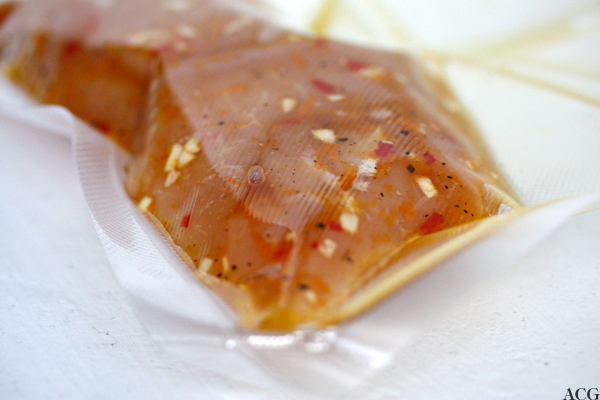 Vakuum-maskiner er i ferd med å bli en ganske vanlig kjøkkendings rundt omkring i det ganske land, mye takket være sous vide-trenden. Jeg har testet Food Sealer Prestige fra OBH Nordica i forbindelse med marinering. Det kan nesten ikke bli enklere: marinade og kjøtt legges i en vakuumpose, du trykker på en knapp, og vips! så er marineringen i «warp speed». Vakuum-marinering gjør at porene i kjøttet åpnes og det gir plass slik at alle de deilige smakene i marinaden blir kjappere absorbert. Marineringstiden går ned fra mange timer til kun en halv time. Og det betyr at det blir middag, og ikke nattmat, selv om du har glemt å å legge kjøttet i marinade før du gikk på jobb! Ganske så kjekt…