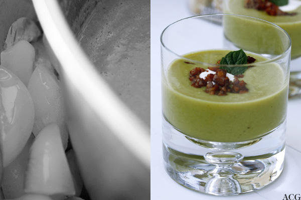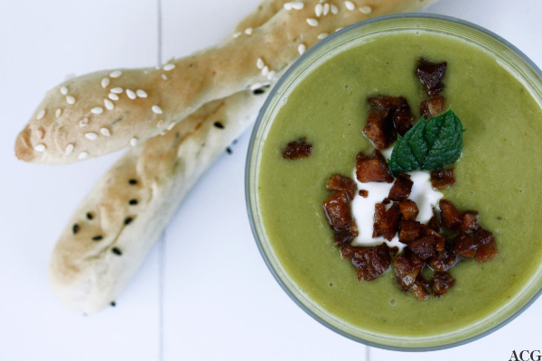 Kald ertesuppe med mynte og bacon (1 porsjon/2-3 forretter)