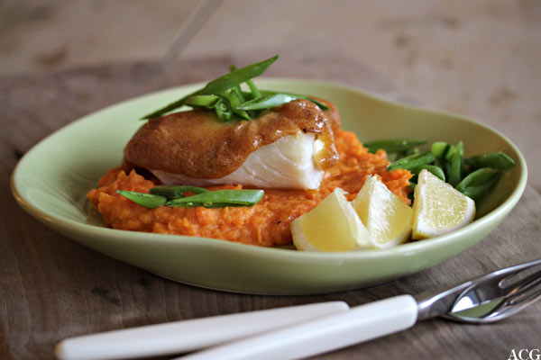 Torskefilet med aioli og søtpotetmos
