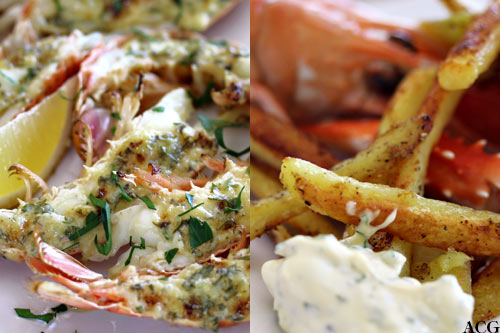 Grillet sjøkreps med «blå» aioli og ovnsstekte fries (1 porsjon)