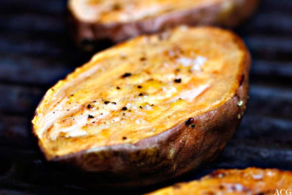 Jeg er ikke veldig opptatt av poteter og spiser det faktisk veldig sjelden. Søtpotet, derimot, er jeg blitt utrolig fan av. Og akkurat som vanlig potet er det sabla digg til grillmat. Som nevnt sammen med grilldressingen er søtpotetfries veldig spennende tilbehør, men har du kun grill tilgjengelig er det bare å ”bake” søtpoteten rett på grillen: Skyll og tørk søtpoteten. Del i to, og ha olivenolje på snittflaten. Krydre med grovt salt pepper. Legg den delte søtpoteten med skinnsiden ned på den varmeste delen av grillen og legg på lokket. Søtpoteten er mør og ferdig bakt i løpet av 30-40 minutter. Server med en klatt godt smør, og spis med t-skje, akkurat som en bakt potet.