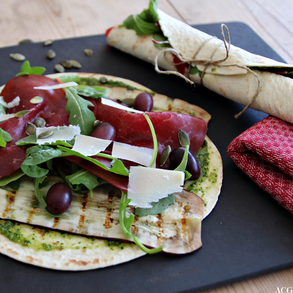 Lunsjwrap med bresaola og grillet aubergine (1 porsjon)