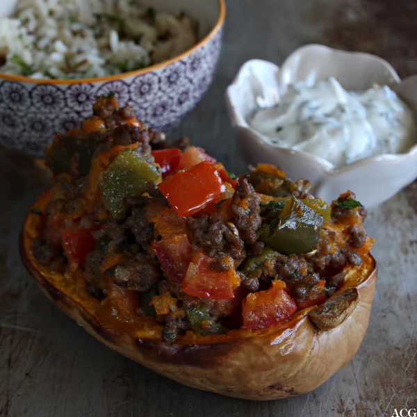 Fylt gresskar med lam og paprika (1 porsjon)