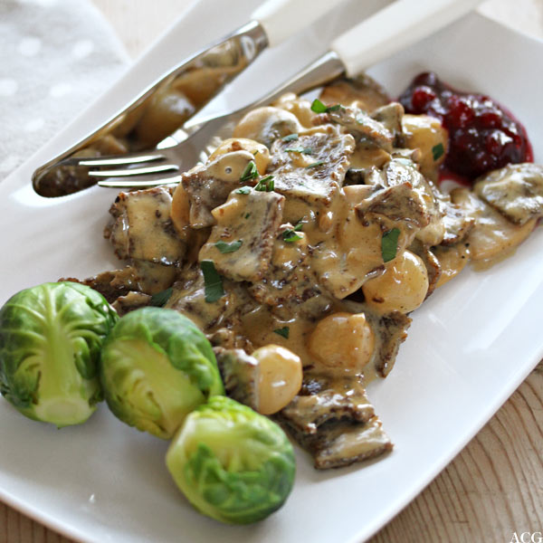 Det tynne, fine reinskavet er perfekt å bruke i gryteretter når du ikke har tid til å vente. Det smaker himmelsk sammen med en saus av mørkt øl, brunost og sølvløk.
